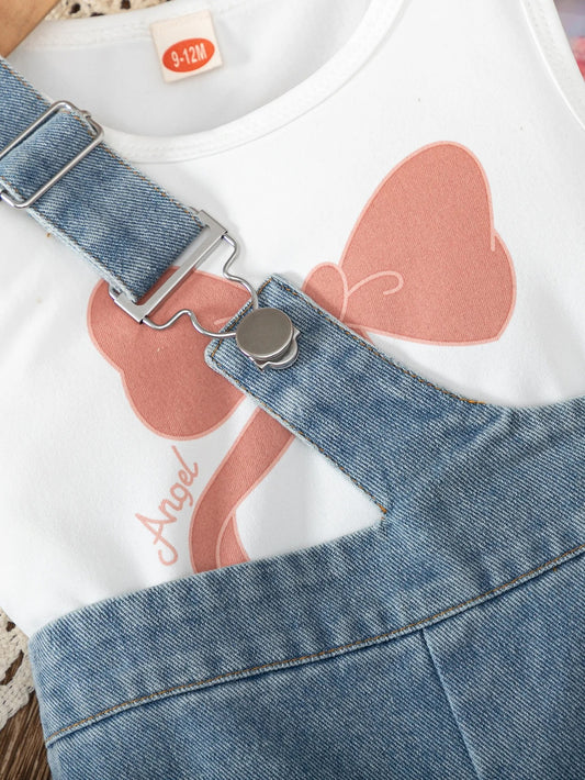 Denim Baby Bow Girls Charm Jumpsuit