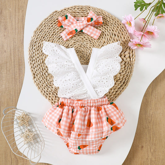 Kyra Carrot Baby Girls Fancy Romper with Headbow