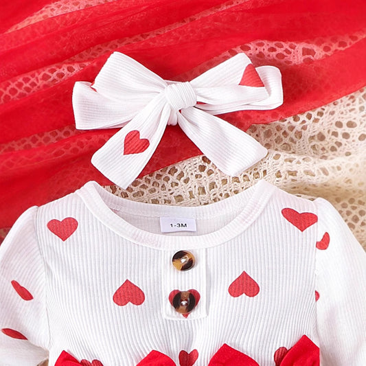 Polka Hearts Baby Girls Romper Dress Set (With Socks and Head Bow)