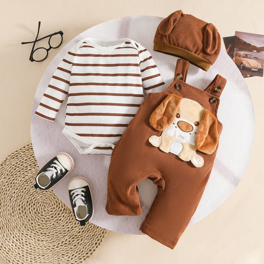 Cozy Striped Baby Boys Girls Teddy Bear Romper