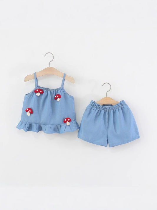Denim Teddy Two-Piece Baby Boys Girls Romper