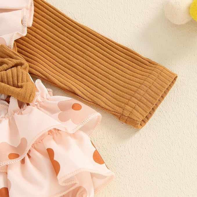 Floral Bow Baby Girls Romper Set with Headband
