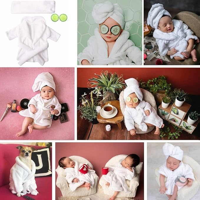 Includes: 1 Bathrobe, 1 Head Towel, 2 Lemon Props