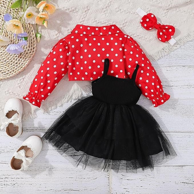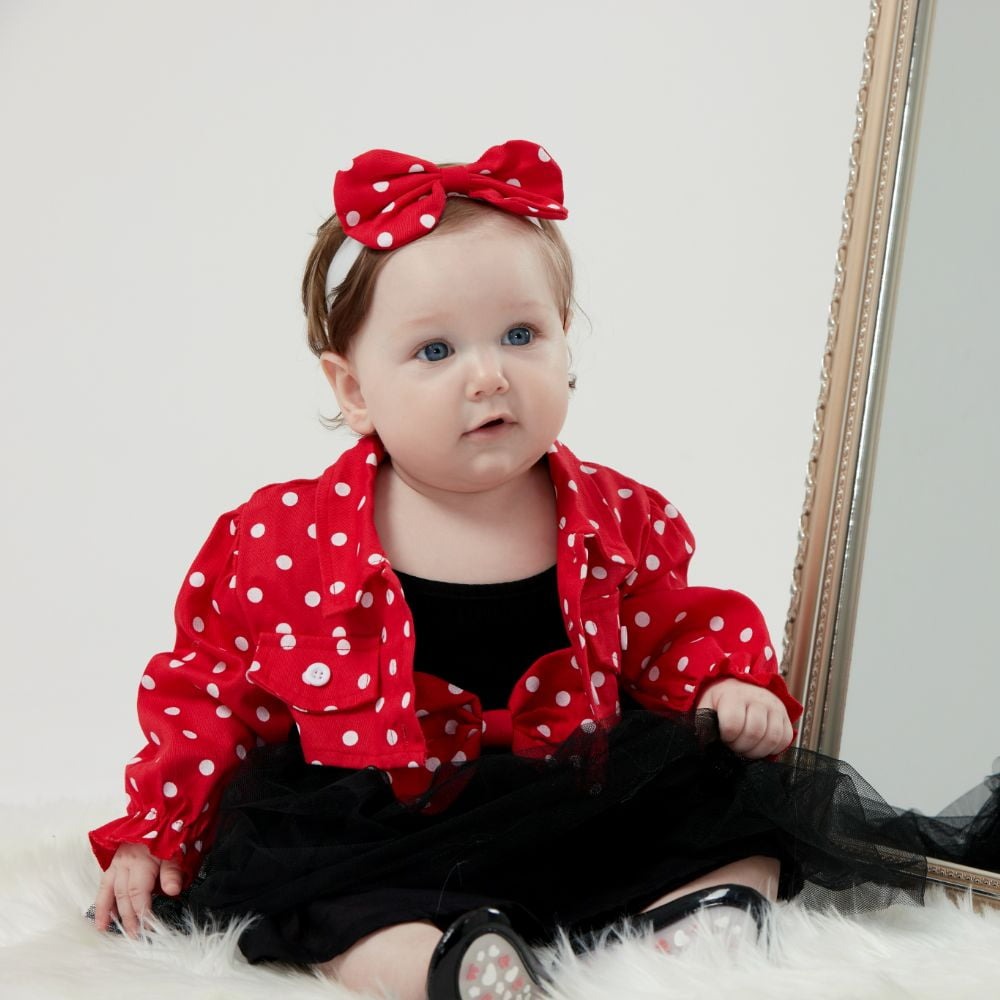 Polka Dot Baby Girls Dress with Jacket and Headband