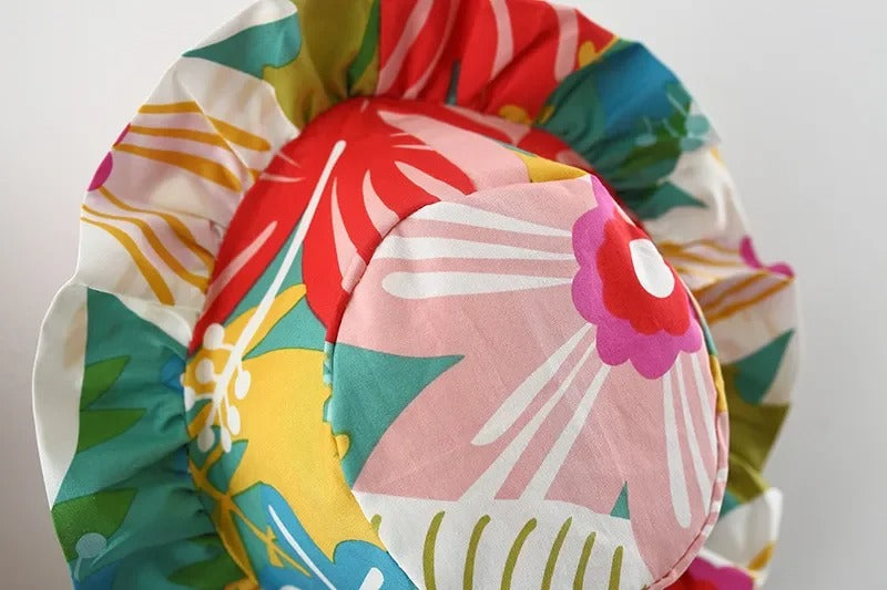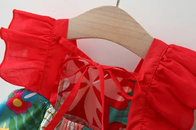 Red Vibrant Frill Sleeves Girls Dress with Hat